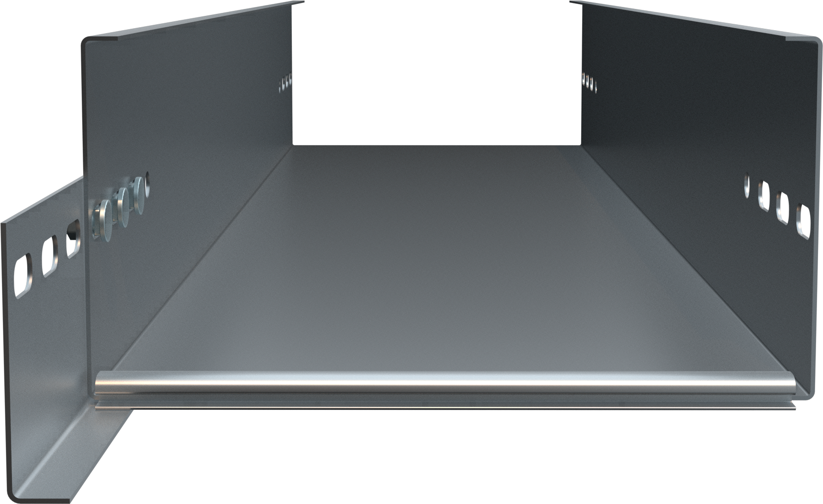 两侧边缘设计为圆角,完全覆盖并遮蔽两段桥架对接处的缝隙,无需额外进行打胶等二次美化处理,节省工时和成本,有效解决传统连接件接缝不美观问题。